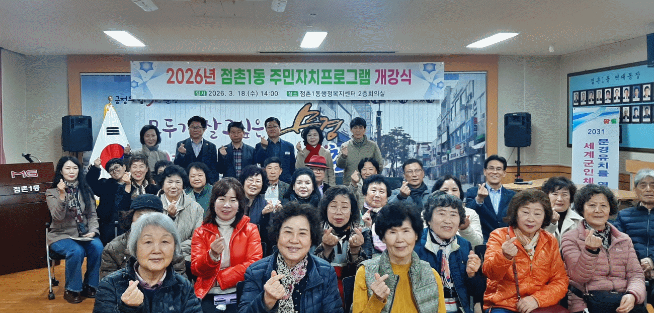 문경시 점촌1동 주민자치위원회(위원장 김기섭)는 지난 3월 18일(수) 점촌1동 행정복지센터에서 건강한 문화·여가 생활 증진을 위해 2026년 점촌1동 주민자치 프로그램 개강식을 열었다.