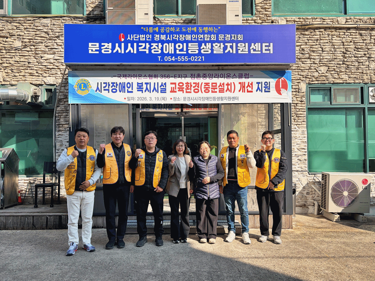 점촌중앙라이온스클럽은 지난 3월 19일, 문경시시각장애인등생활지원센터를 방문하여 효율적인 프로그램 운영을 위한 중문 설치 공사를 지원했다.