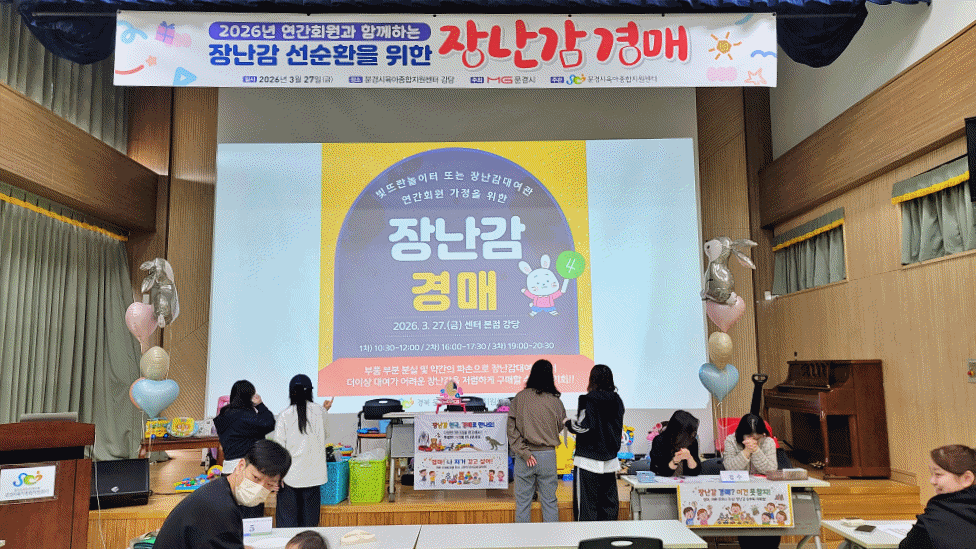 문경시육아종합지원센터(센터장 강소영)는 3월 27일 문경시육아종합지원센터 강당에서 자원 순환과 가계 부담 완화를 위한 ‘장난감 경매’ 행사를 열었다.