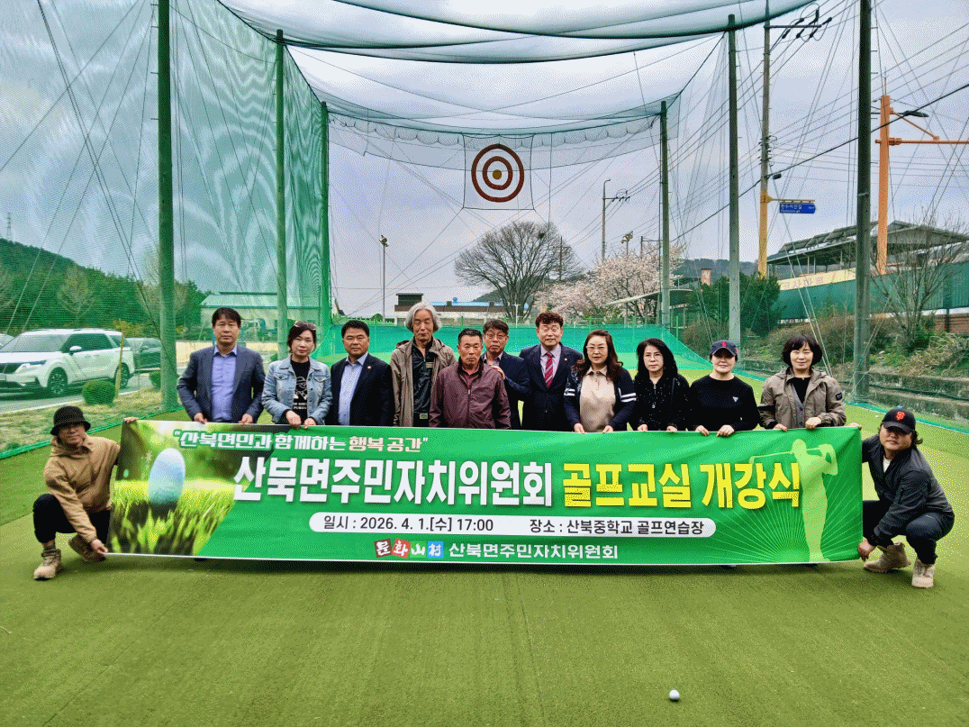 산북면 주민자치위원회(위원장 황인영)가 4월 1일 산북중학교 골프연습장에서 ‘2026년 주민자치센터 골프교실 개강식’을 개최했다.