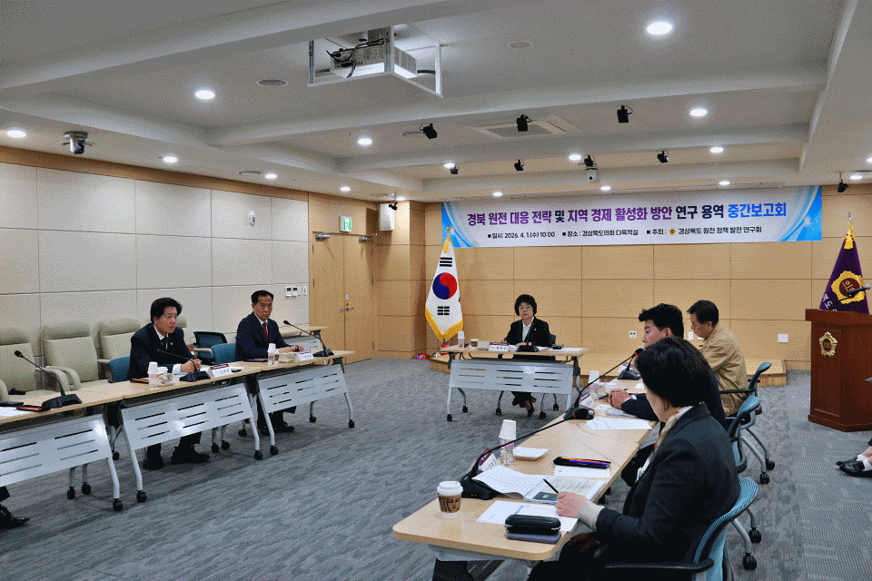 경북도의회 의원연구단체인「경상북도 원전 정책 발전연구회」(대표 황명강 의원)는 4월 1일(수) 경북도의회 다목적실에서 ‘경북 원전 대응 전략 및 지역경제 활성화 방안’ 연구용역 중간보고회를 개최했다.