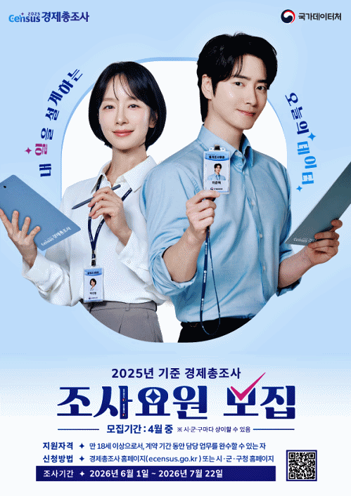 문경시는 '2025년 기준 경제총조사'를 위해 4월 6일부터 4월 17일까지 조사관리요원 9명, 조사원 21명 등 총 30명을 선발한다.