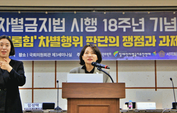 서미화 의원(더불어민주당, 보건복지위)이 10일(금) 오후 2시, 국회의원회관 제3세미나실에서 「장애인차별금지법 시행 18주년 기념 토론회: ‘괴롭힘’ 차별행위의 쟁점과 과제」를 개최했다. 국가인권위와 (사)장애인차별금지추진연대가 공동주최했으며 보건복지부가 후원으로 함께했다.